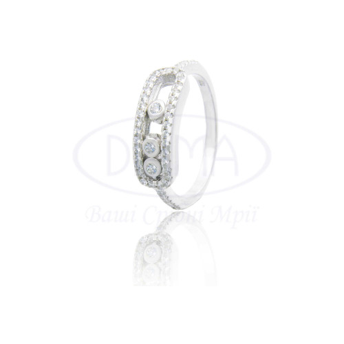 Срібна каблучка з білим цирконом, який рухається. Срібло 925 проби, покрите родієм. В комплекті є браслет