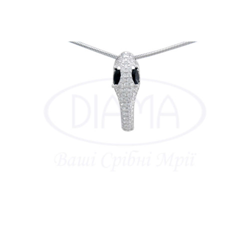 Підвіска срібна з білим цирконом у формі змії. Срібло 925 проби, покрите родієм. В комплект входить каблучка, сережки та підвіска.
