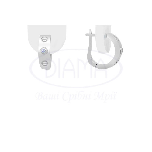 Сережки срібні з білим цирконом. Срібло 925 проби, покрите родієм. В наборі є сережки та каблучка.