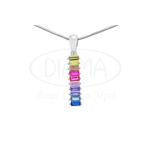 Підвіска срібна з різнокольоровим цирконом. Срібло 925 проби, покрите родієм. В комплекті каблучка, підвіска та сережки.