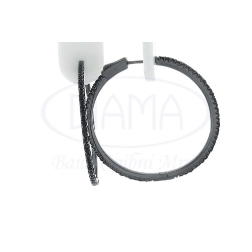Сережки срібні з чорним цирконом. Срібло 925 проби, покрите чорним родієм. Висота сережки 40 мм, ширина 2 мм.