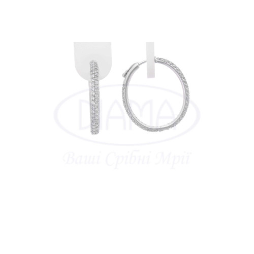 Срібні сережки "Конго" з білим цирконом. Срібло 925 проби, покрите родієм.
