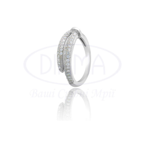 Срібна каблучка у формі цвяха з білим цирконом. Срібло 925 проби, покрите родієм. В наборі присутні каблучка, сережки та підвіс.