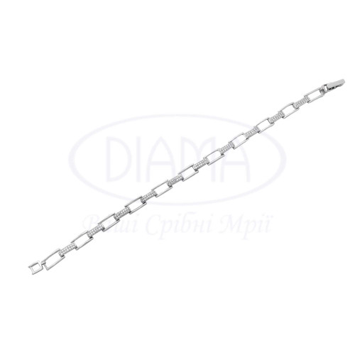 Браслет срібний з білим цирконом. Срібло 925 проби, покрите родієм.