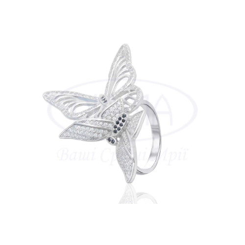 Срібна каблучка в формі Метеликів з білим та чорним цирконом. Срібло 925 проби, покрите родієм.