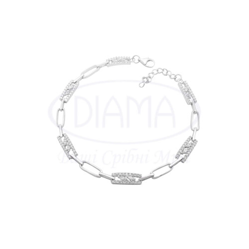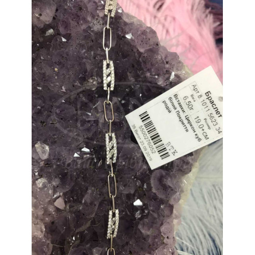 Браслет срібний з білим цирконом. Срібло 925 проби, покрите родієм. Розмір прямокутника з цирконом 5х13 мм. без циркону 4х10,5 мм.