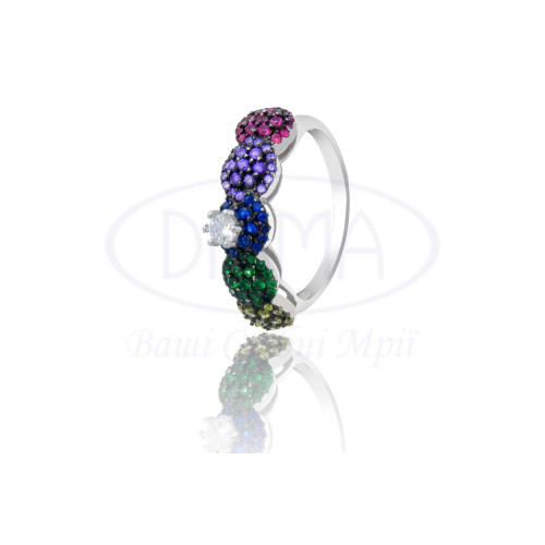 Срібна каблучка з різнокольоровим цирконом. Срібло 925 проби, покрите родієм.