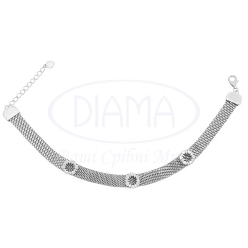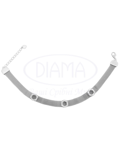 Браслет срібний з прикрасами у формі сердечок та білим цирконом. Срібло 925 проби, покрите родієм.