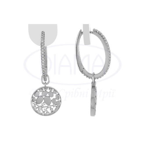 Срібні сережки з білим цирконом. Срібло 925 проби, покрите родієм.