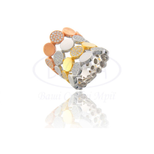 Каблучка срібна з білим цирконом. Срібло 925 проби, покрите родієм, жовтою та червоною позолотою