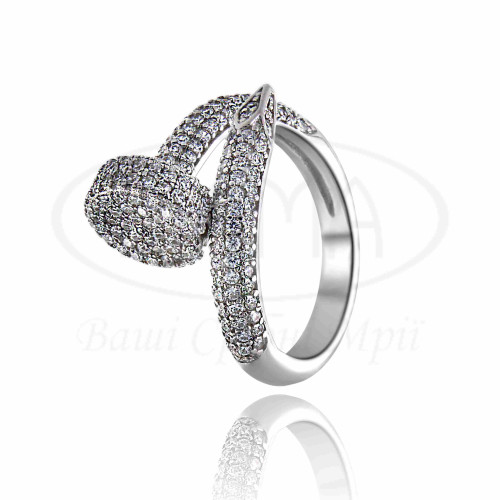 Срібна каблучка в формі цвяха з білим цирконом. Срібло 925 проби, покрите родієм.
