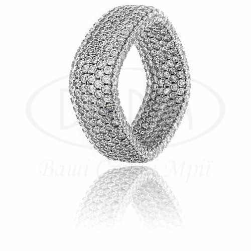 Каблучка срібна з білим цирконом. Срібло 925 проби, покрите родієм. Ширина каблучки 9 мм.