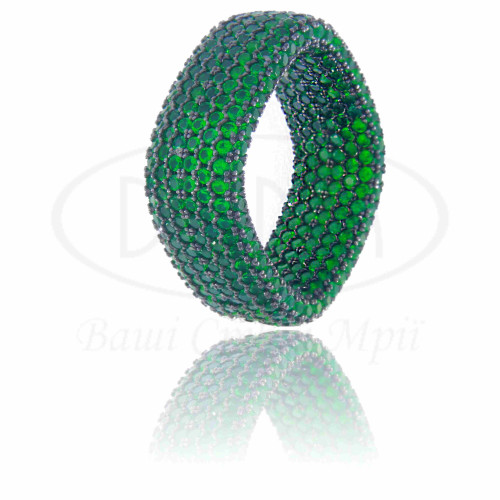 Каблучка срібна з зеленим цирконом. Срібло 925 проби, покрите родієм. Ширина каблучки 9 мм.