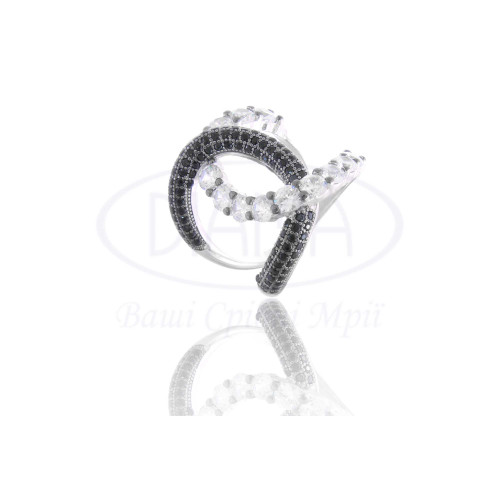 Срібна каблучка з білим та чорним цирконом. Срібло 925 проби, покрите родієм. Каблучка виготовлена в стилі "Шанель".
