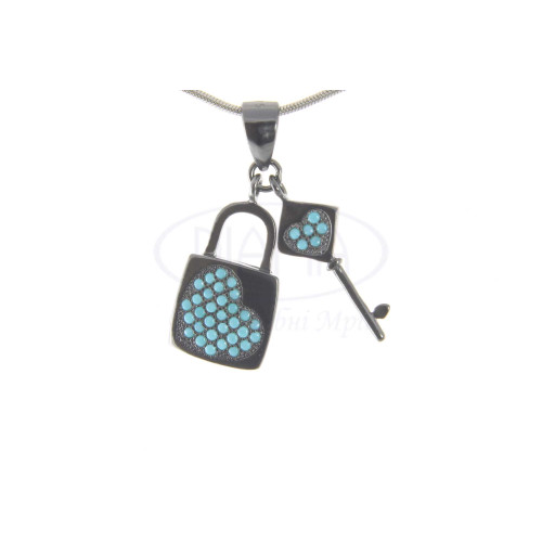Срібна підвіска з замком та ключем. Вставка- бірюза. Срібло 925 проби, чернене.