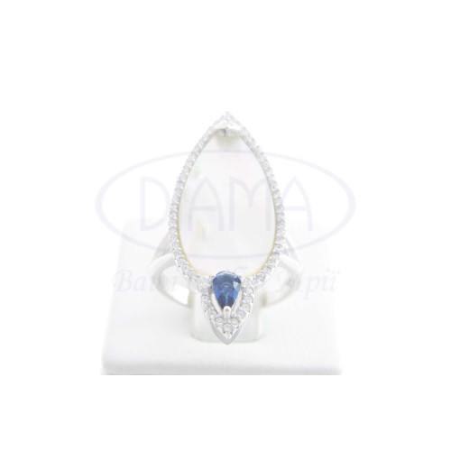 Каблучка срібна 925 проби з білим перламутром, синім та білим цирконом, покрита родієм. Комплект складається з каблучки, підвіски та сережок.