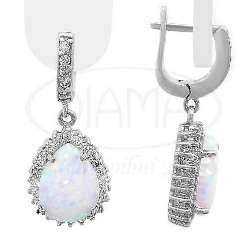 Сережки срібні в формі краплі з білим опалом та цирконом. Срібло 925 проби, покрите родієм. В наборі присутні Каблучка та сережки.