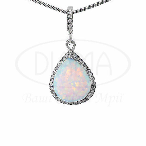 Підвіска срібна з білим опалом та білим цирконом у формі краплі. Срібло 925 проби, покрите родієм. В комплекті каблучка, підвіска та сережки.