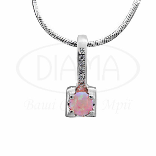 Підвіска срібна з рожевим опалом та білим цирконом. Срібло 925 проби, покрите родієм. До набору входить каблучка, підвіска та сережки.