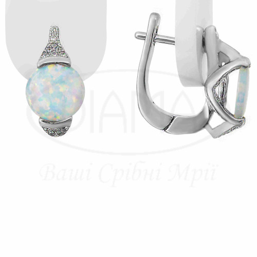 Сережки срібні з білим круглим опалом та цирконом. Срібло 925 проби, покрите родієм. В наборі присутні Каблучка, сережки та підвіска.