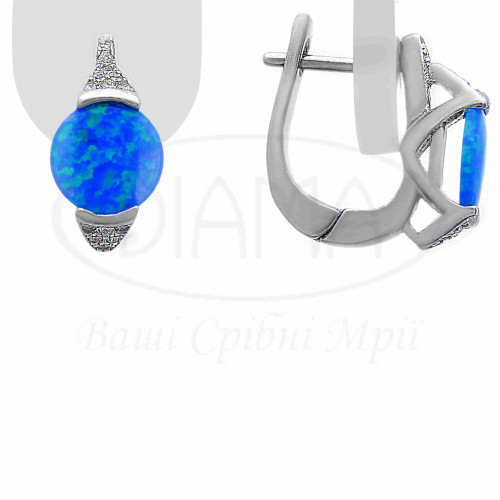 Сережки срібні з синім круглим опалом та цирконом. Срібло 925 проби, покрите родієм. В наборі присутні Каблучка, сережки та підвіска.
