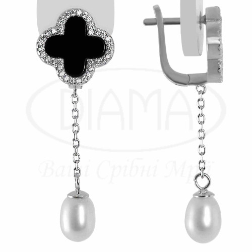 Сережки зі срібла з Оніксом та Перлиною