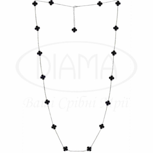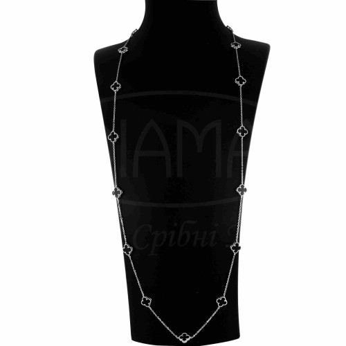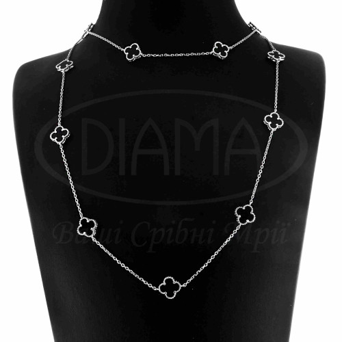 Срібне Кольє 925 проби, покрите родієм. Виготовлене в формі Конюшини з Оніксом. В наборі присутні кольє та браслет.