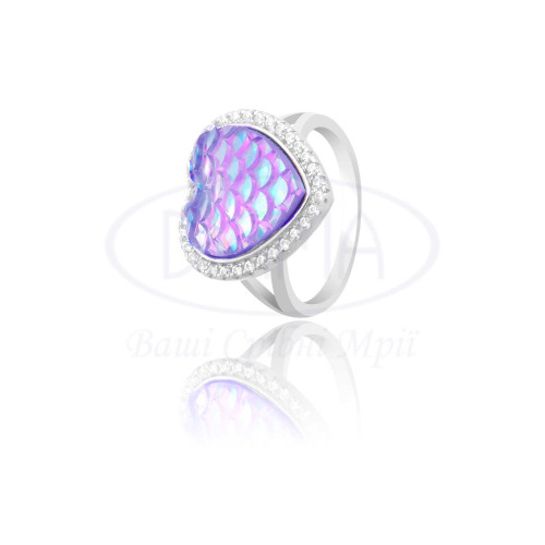 Каблучка срібна з кольоровим ювелірним склом в формі серця та білим цирконом. Срібло 925 проби, покрите родієм. Розмір 16 мм.