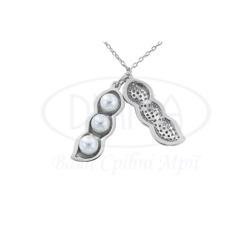 Кольє срібне з білими перлинами та цирконом. Срібло 925 проби, покрите родієм. Розмір головного елементу 22*9 мм.