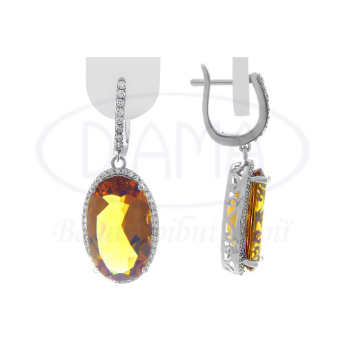 Сережки срібні з султанітом овальної форми та білим цирконом навколо нього. Султаніт - камінь, який може змінювати відтінок, в залежності від освітлення. Срібло 925 проби, покрите родієм. В комплекті також є каблучка та підвіска.