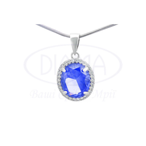 Підвіска срібна з Танзанітом та білим цирконом. Срібло 925 проби, покрите родієм. В наборі присутні каблучка, сережки та підвіска.