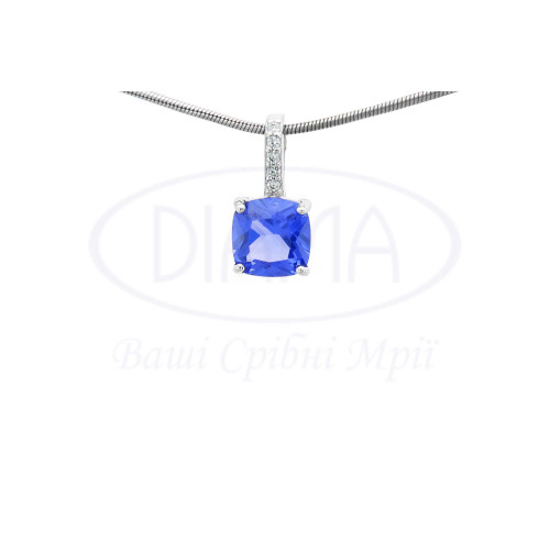 Підвіска срібна з Танзанітом та білим цирконом. Срібло 925 проби, покрите родієм. В наборі присутні каблучка, сережки та підвіска.
