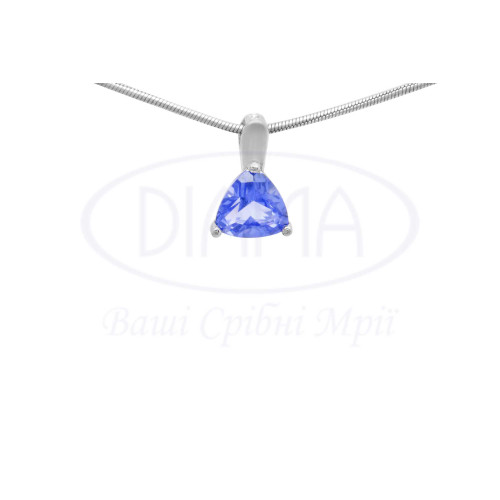 Срібна підвіска з Танзанітом в формі трикутника. Срібло 925 проби, покрите родієм. В наборі присутні каблучка, сережки та підвіска. Розмір головного елементу 8*8 мм.