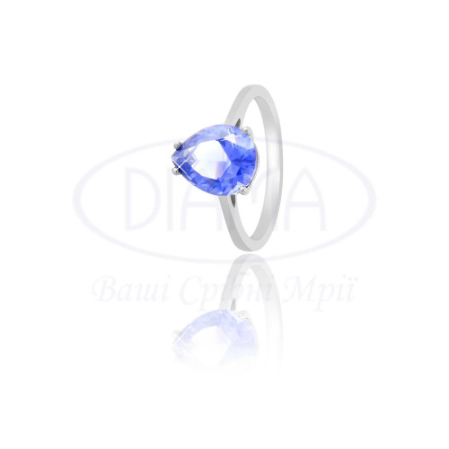 Срібна каблучка з Танзанітом в формі краплі. Срібло 925 проби, покрите родієм. В наборі присутні каблучка, сережки та підвіска. Розмір головного елементу 8*10 мм.