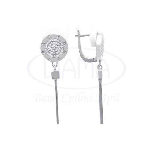 Срібні сережки з білим цирконом та написом "Love". Срібло 925 проби, покрите родієм. В наборі присутна каблучка, сережки та підвіска. Діаметр кола 14 мм.