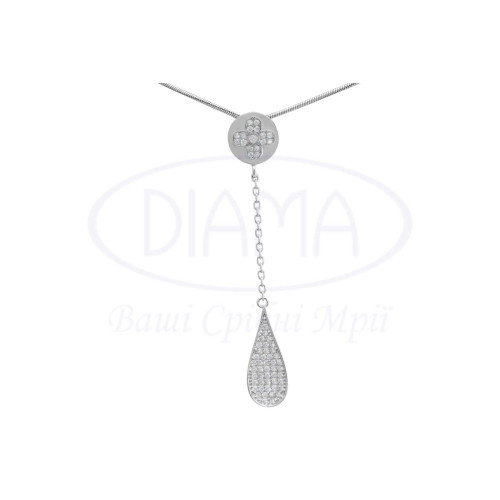 Підвіска срібна з білим цирконом у формі краплі. Срібло 925 проби, покрите родієм. В комплекті каблучка, сережки та підвіска.