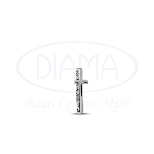 Підвіска срібна у вигляді хреста з білим цирконом. Срібло 925 проби, покрите родієм. В наборі є каблучка, сережки та підвіска