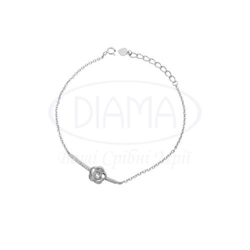 Браслет срібний в формі квітки з білим цирконом. Срібло 925 проби, покрите родієм. В наборі є каблучка, сережки, браслет та кольє.