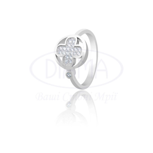 Каблучка срібна у вигляді "клевера" з білим цирконом. Срібло 925 проби, покрите родієм. В наборі є каблучка, сережки та підвіска.