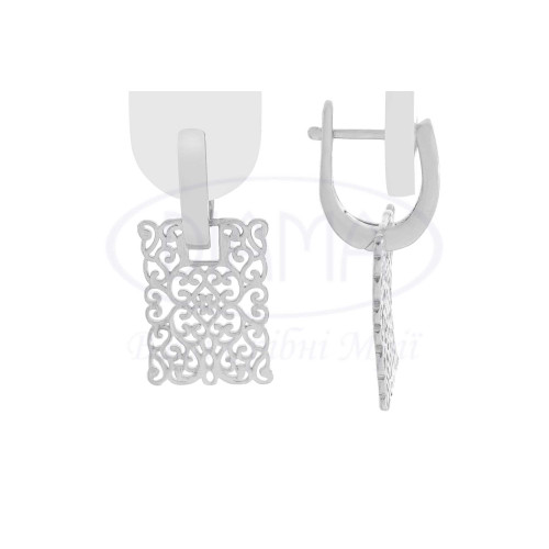 Сережки срібні у формі прямокутника. Срібло 925 проби, покрите родієм. Розмір сережки 20х15 мм. В комплекті каблучка та сережки.