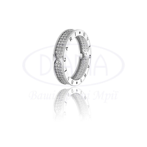Каблучка срібна з білим цирконом у стилі відомого бренду. Срібло 925 проби, покрите родієм. Ширина каблучки 5 мм.