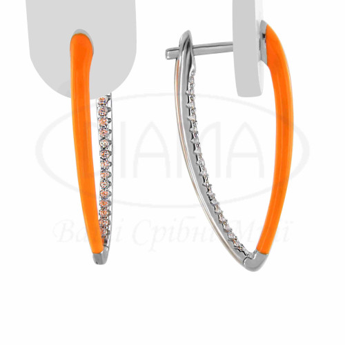 Сережки срібні з Помаранчевою емаллю та білим цирконом. Срібло 925 проби, покрите родієм. Розмір 34 мм.