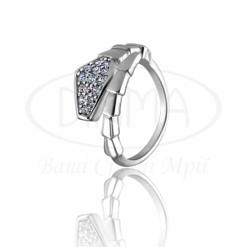 Срібний браслет з білим цирконом у формі Змії. Срібло 925 проби, покрите родієм. Ширина головного елементу каблучки (голова) 7 мм.