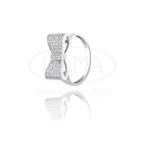 Каблучка срібна у формі бантика з білим цирконом. Срібло 925 проби, покрите родієм. У наборі присутні каблучка,сережки та підвіска.