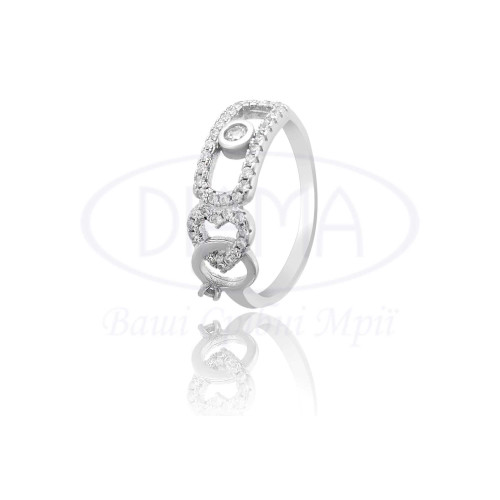Срібна каблучка з білим цирконом. Срібло 925 проби, покрите родієм. В наборі присутні каблучка, сережки, браслет та кольє.