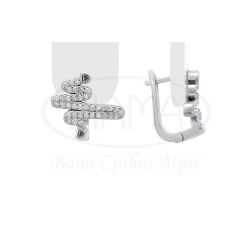 Срібні сережки з білим цирконом у формі серцебиття. Срібло 925 проби, покрите родієм. В наборі присутні каблучка, сережки, браслет та кольє.