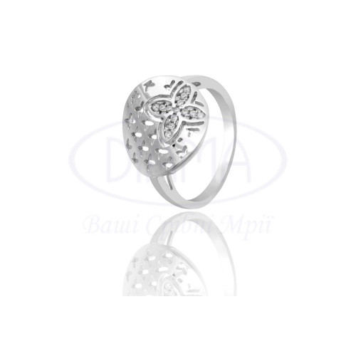 Каблучка срібна з квітами та білим цирконом. Срібло 925 проби, покрите родієм. У наборі присутні каблучка, сережки та підвіска.