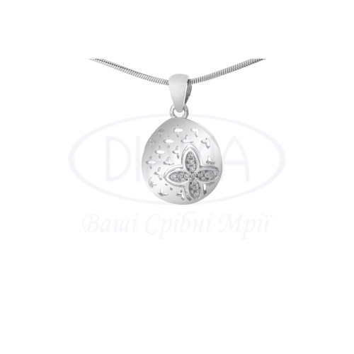 Підвіска срібна з квітами та білим цирконом. Срібло 925 проби, покрите родієм. У наборі присутні каблучка, сережки та підвіска.