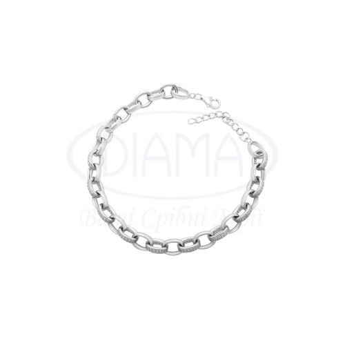 Браслет срібний з білим цирконом. Срібло 925 проби, покрите родієм.