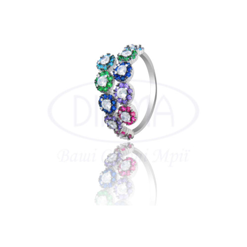 Срібна каблучка з різнокольоровим цирконом. Срібло 925 проби, покрите родієм.